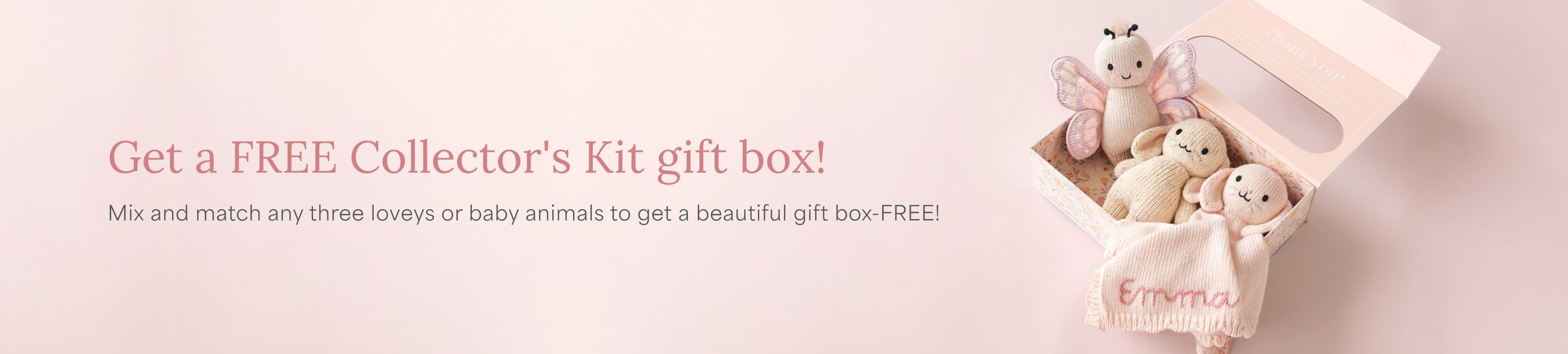 Beautifully hand-knit, luxuriously soft organic cotton loveys that feed children.