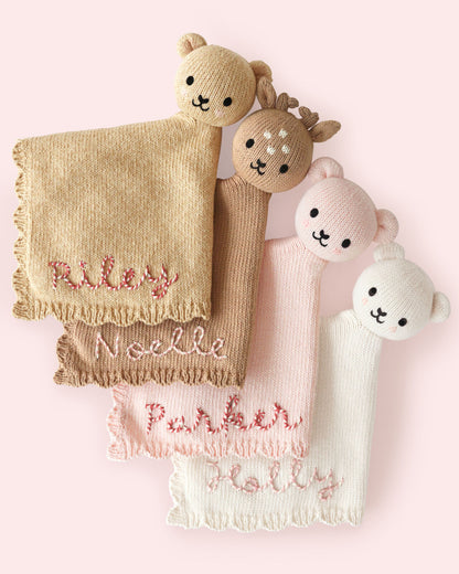 - Each lovey can be personalized with your little one’s name