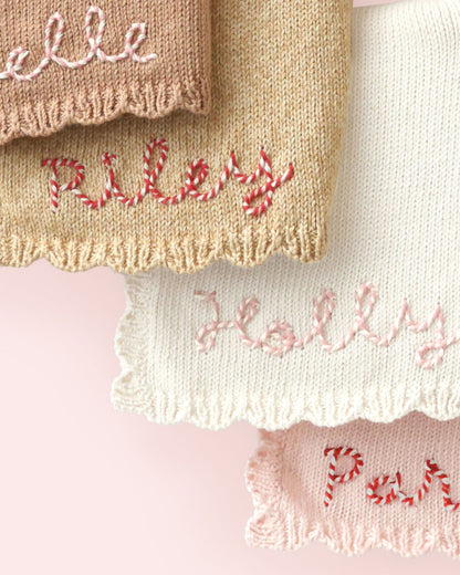 - Personalized loveys are hand-embroidered and will ship by December 16th.