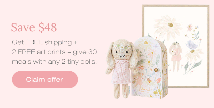 These beautiful hand-knit tiny dolls have stunning craftsmanship and exquisite details that make them little works of art. You’ll love to collect and share these 6" renditions of beloved cuddle+kind characters with your little one so they can create memories they will treasure forever.