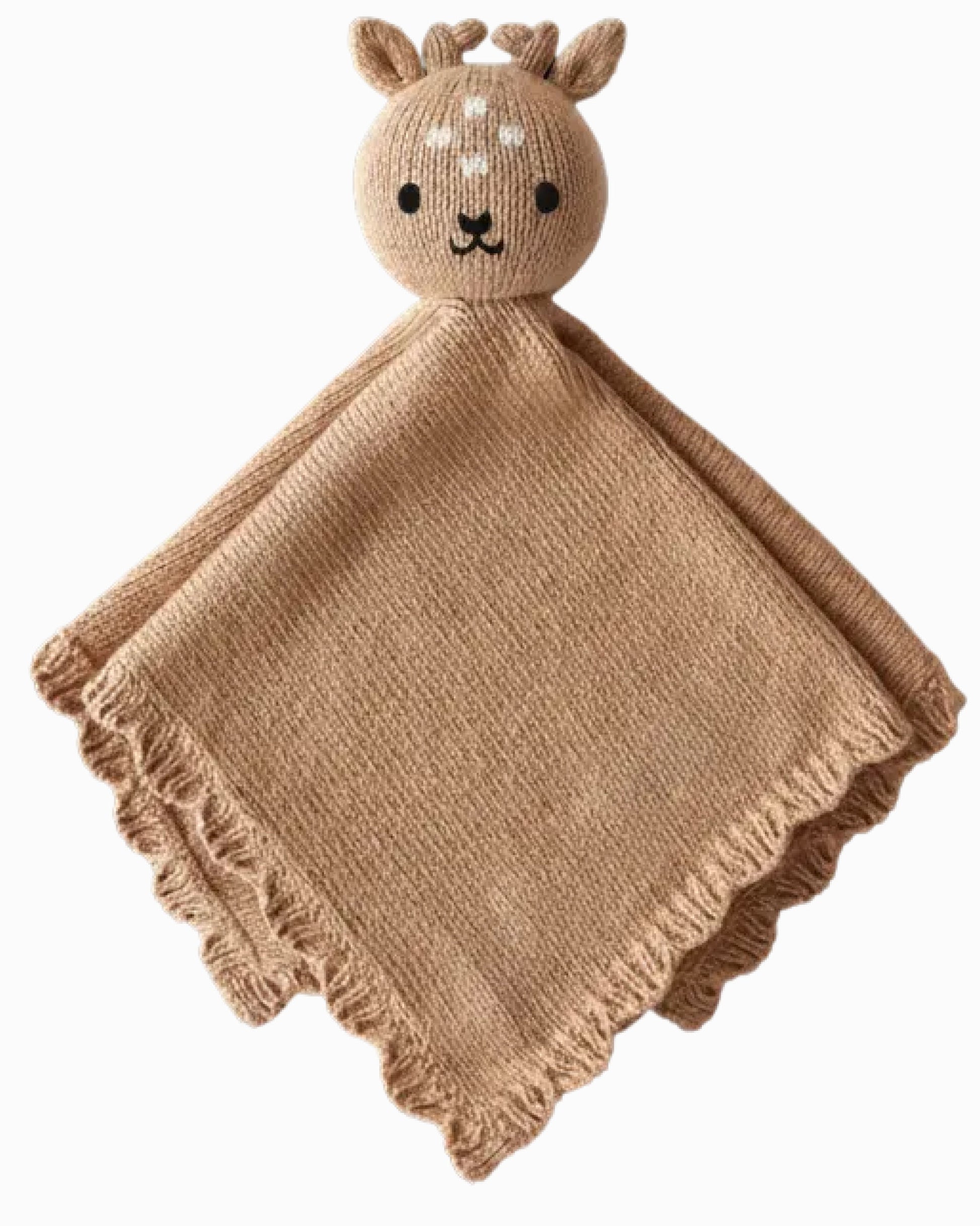 Introducing two adorable new loveys: a soft, loving fawn or classic polar bear. Hand-knit in luxuriously soft, organic cotton yarn and finished with delicate scalloped trim, theyâre so perfect for cozy season. The teeny baby antlers! The sweet blushing cheeks! Your littles wonât want to let them go.