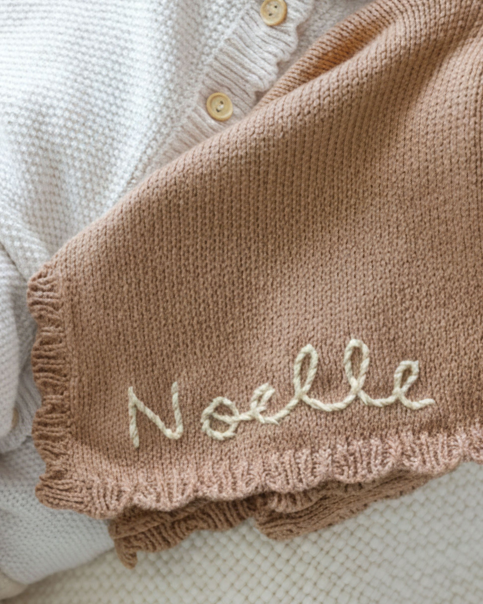 Beautifully hand-knit and luxuriously soft, our heirloom-quality loveys are designed to comfort your little one from day one. Each one is handcrafted from 100% organic cotton and finished with delicate scalloped trim and sweet hand-embroidered details that coordinate perfectly with our beloved baby animal collection.